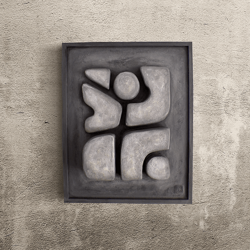 HAUSZI is the name of a body of work inspired by the Bauhaus art movement. This piece HUAN HAUSZI is a fusion between Japanese Wabi Sabi and Bauhaus abstract.