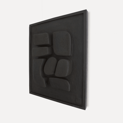 Makkuro (Pitch black) Fukei (landscape) from the Wabi Sabi / Bauhaus inspired collection named 'Phat Hauszi' the assemblage is composed by robust rounded pieces in various shapes. The difference per height in shape creates a dynamic shadow play depending the light.