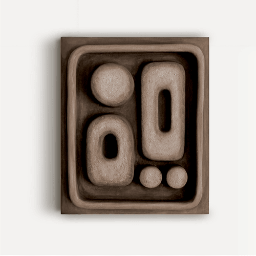 Due to the layering & destroying technique the shapes appear weathered with character, the structure on the surface is created by adding ground coffee, salt and cinnamon mixed with paint.